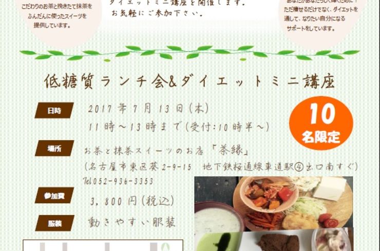 2017/06/21車道にある美味しい日本茶と抹茶スイーツが食べられる大好きなカフェ 茶縁さんとコラボでイベントをすることになりました! 第1回 笑縁ライフ ~自分を大切にして、楽しむ~ 笑縁ライフとは・・・ お茶と抹茶スイーツのお店 茶縁と自分らしく輝くダイエットサロンemi-lifeがコラボして、 『健康』『美』『幸せ』をテーマに「笑顔」と「ご縁」を創っていくイベントです。 第1回目は・・・ ... -