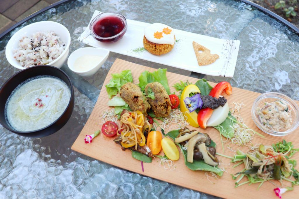 低糖質ランチは、emi-lifeうめちゃんの野菜たっぷり身体に優しいデトックスランチと茶縁さんのオリジナルめっちゃ美味しい低糖質スイーツ&お茶付きの豪華ランチで、身体の中から健康できれいに