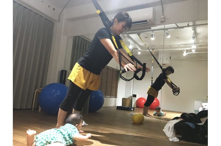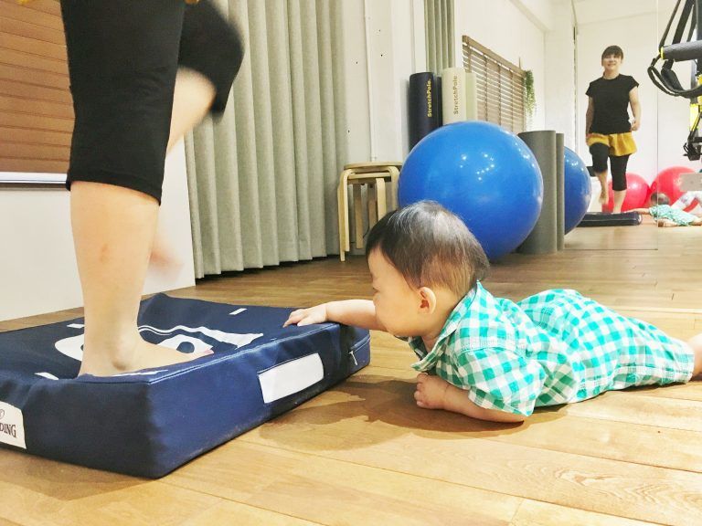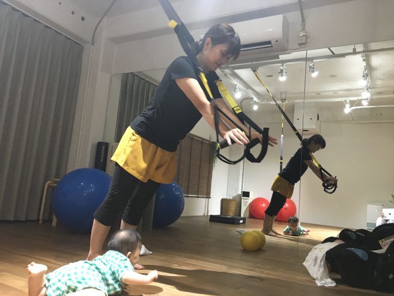赤ちゃんもママと一緒に体感トレーニング(笑)