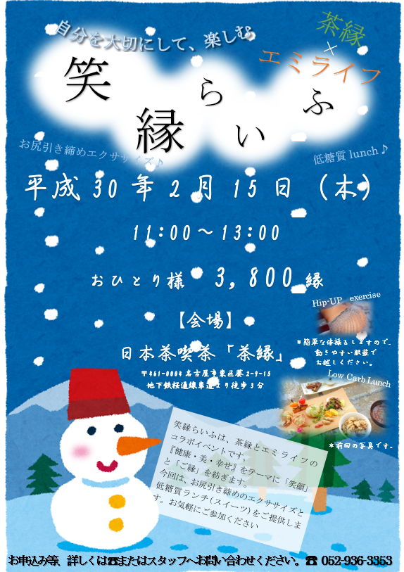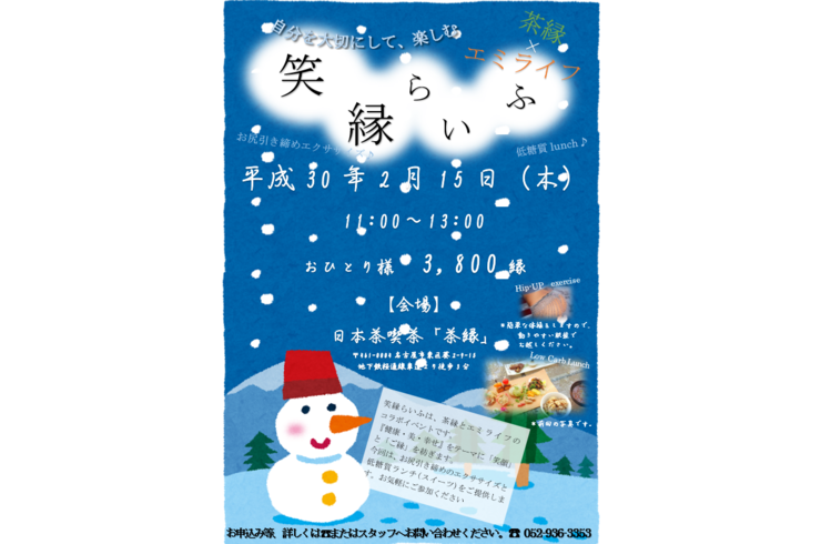 2月15日(木)は、東区車道にある日本茶カフェ「茶縁」さんで、茶縁さんとのコラボイベント『第3回 笑縁らいふ』でした